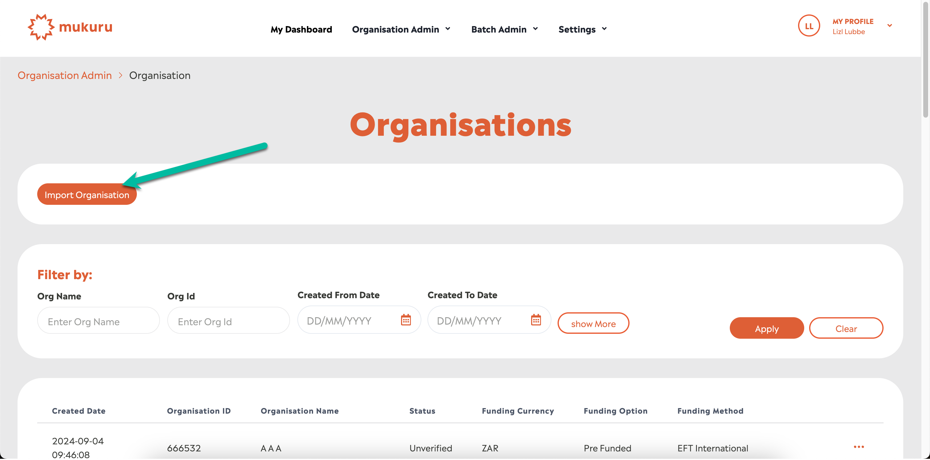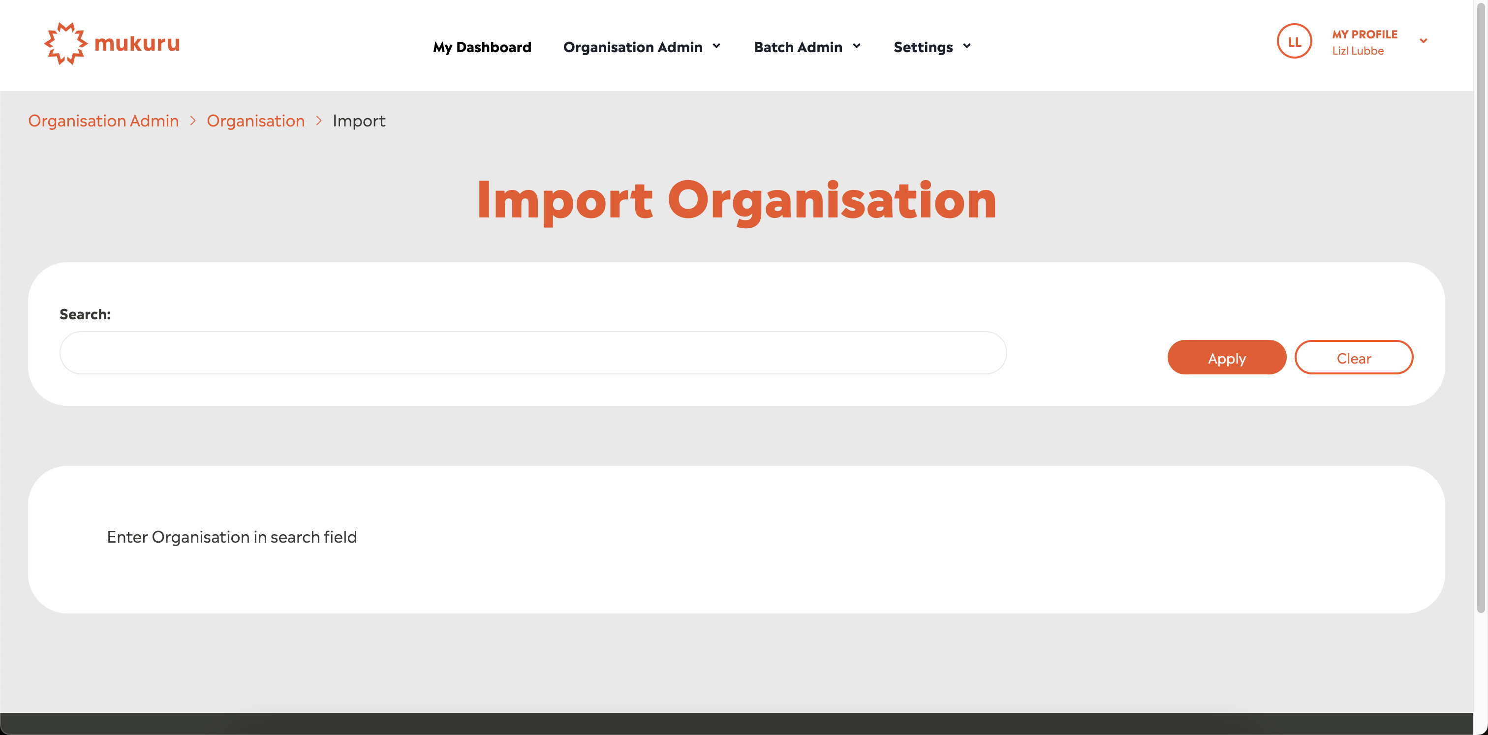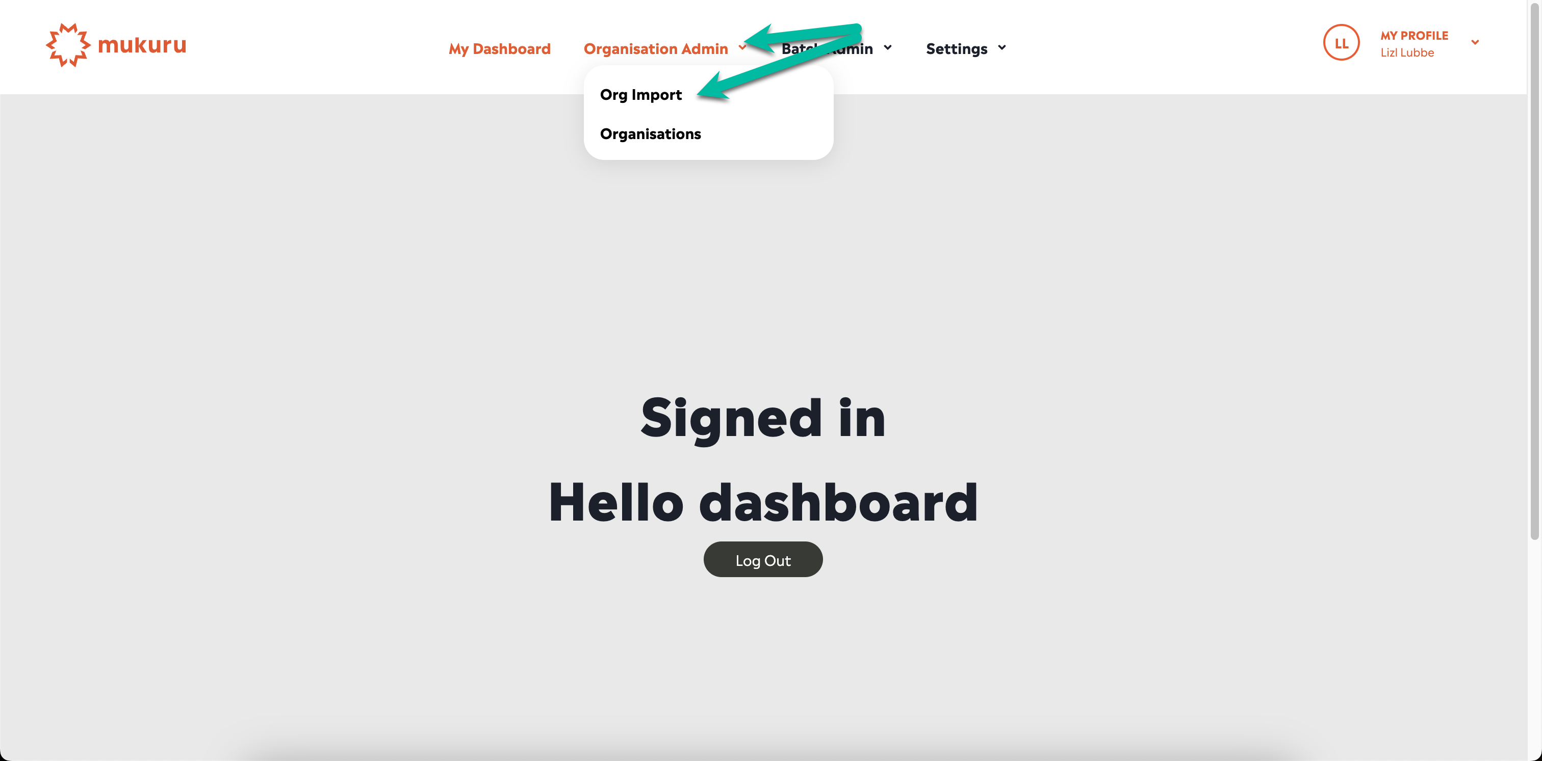 Or click on the Org Import option in the Organisation Admin menu: