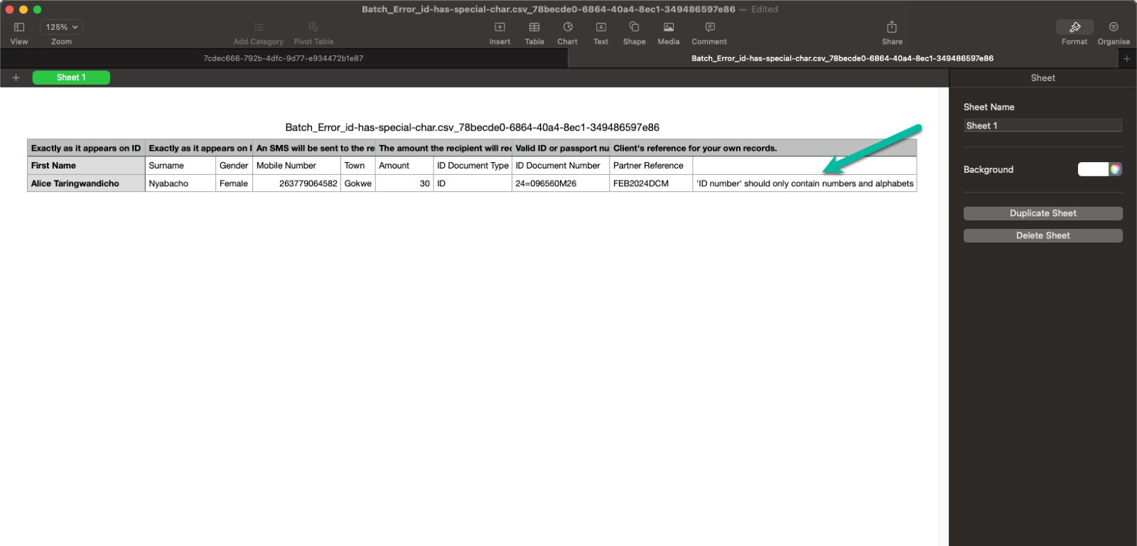 Failed batches will have a Batch Error File, indicating which fields in the batch did not conform to the rules.
