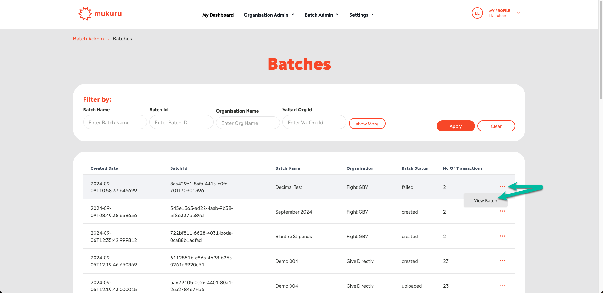 To access the files, click on “View Batch” from the Batches screen: