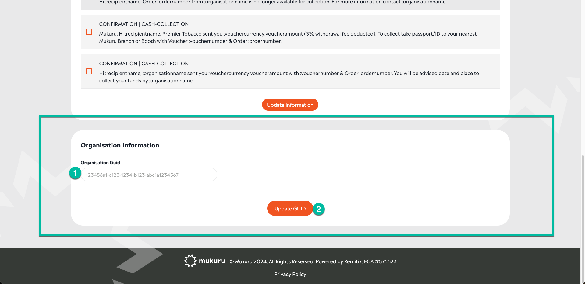 Enter the GUID into the textbox [1] and click Update GUID [2] to affect the change: