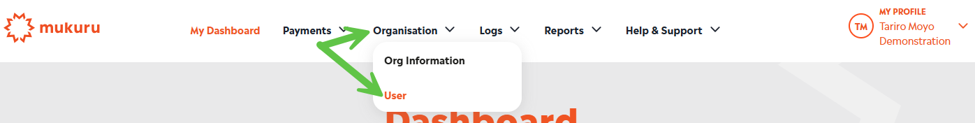 Expand the Organisation menu and select User:
