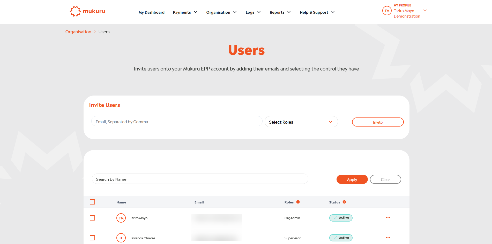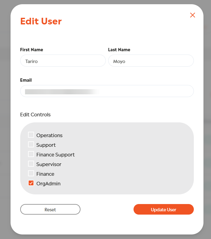 Organisation Administrators can manage user access by editing the user profile on the Users page.