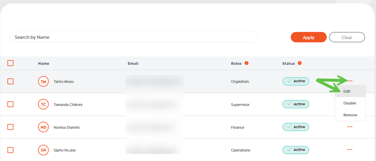 Navigate to the User whose access you want to manage, and click on the ellipses to see the Edit option: